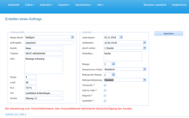 Die Web Auftragserfassung gestattet die Eingabe von Bestellungen und Aufträgen Ihrer Kunden über den Browser. Die Aufträge stehen in der Tourenplanung direkt zur Verfügung und können anschliessend verplant werden.