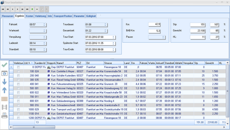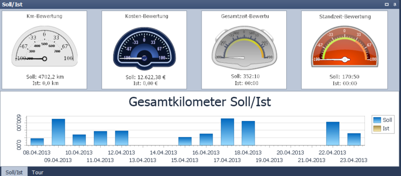 Die Planung und anschließende Rückerfassung der Touren ermöglicht eine durchgehende Erfolgskontrolle. Der Soll-/ Ist-Vergleich ermittelt Abweichungen zwischen geplanten und tatsächlich gefahrenen Touren. Dies ist die Basis zur kostenmäßigen Bewertung der Kunden und der Leistungskontrolle der Fahrzeuge. Die Rückerfassung erfolgt manuell oder durch Anbindung von Telematikgeräten und/oder Smartphones.