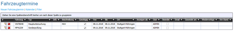 Das Portal Fuhrparkmanagment ermöglicht die Eingabe und Verwaltung von Fahrzeugterminen und Fahrerterminen sowie sämtliche Verwaltungsaufgaben rund um das Fahrzeug unden Fahrer. Die Daten werden in der Tourenplanung direkt berücksichtigt.